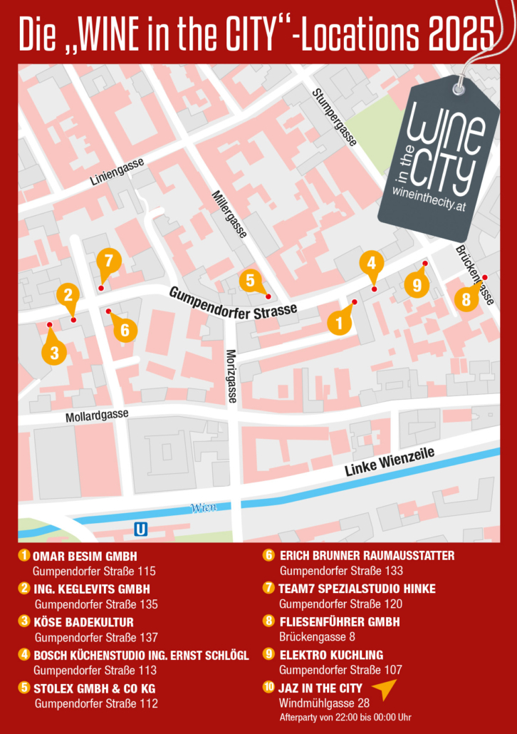 In Kürze finden Sie hier den Lageplan zu allen Ausstellern für WINE in the City 2025 in Wien – Gumpendorf